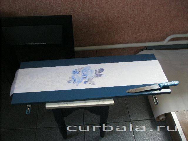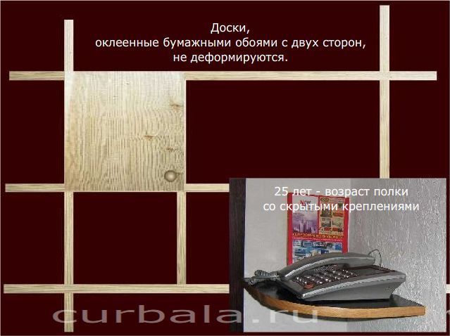 Оклеивание противоположных пластей доски предупреждает ее деформацию. Это значить, что с помощью бумажных обоев можно мастерить относительно легкие предметы для меблировки дома. Например настенные и