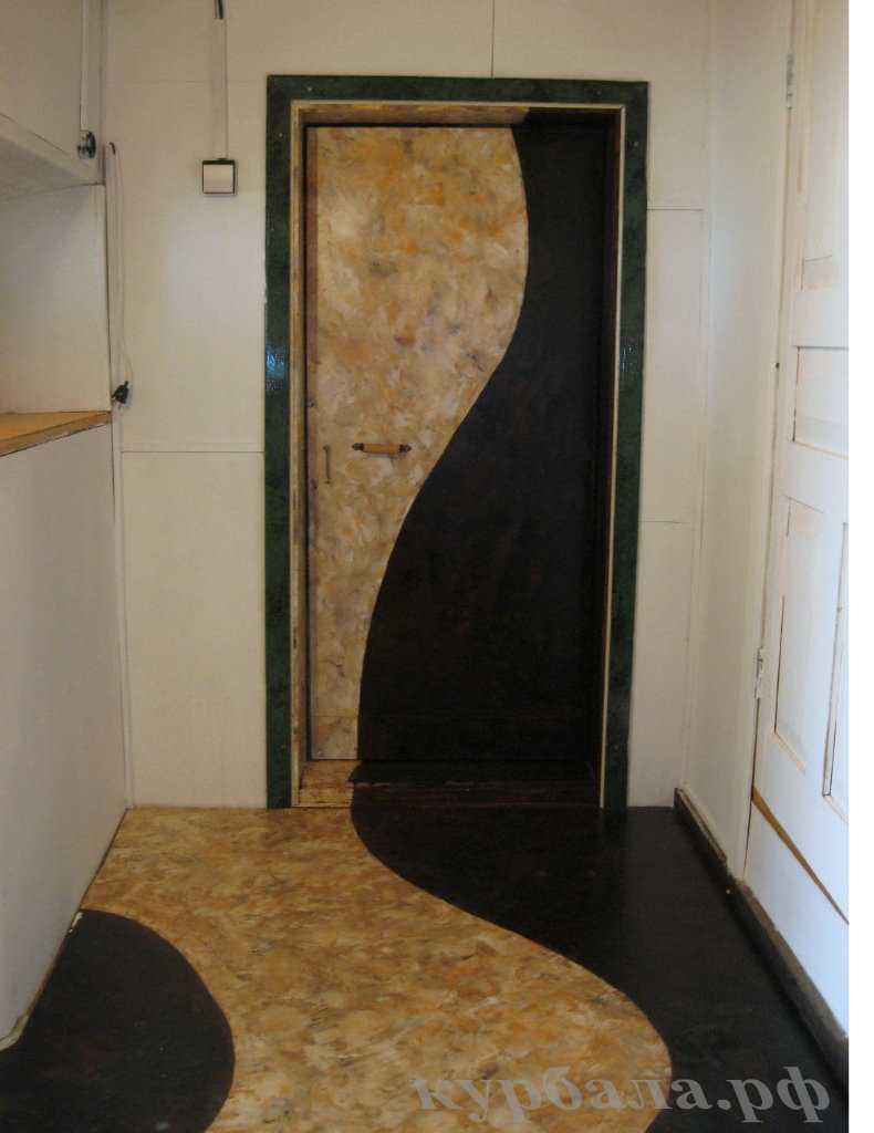 устройства двери назначению помещения, в котором дверь установлена. Перейдя по ссылке, Вы прочтете как с малыми расходами сделать теплую входную дверь бани. На фото 8 отображена входная дверь с улицы в раздевалку бани с внешней отделкой под дизайн предбанника.