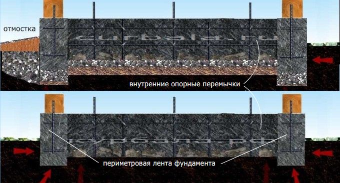 При планировании пристроя к дому в виде гаража, мастерской или бани, а также различных, встроенных в стены дома, элементов постарайтесь ленточный фундамент или столбчатые опоры под них делать по той же технологии, что и основная лента под дом.