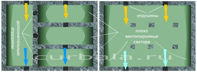 При установке кирпичной печи внутри дома необходимо залить под ее основание отдельный фундамент, не связанный с элементами основной ленты фундамента дома. Фундамент печи должен иметь тепловой зазор не менее 100 миллиметров от внутренней стенки ленточного фундамента. Размеры фундамента в плане должны превышать внешние размеры печи на ширину кирпича.