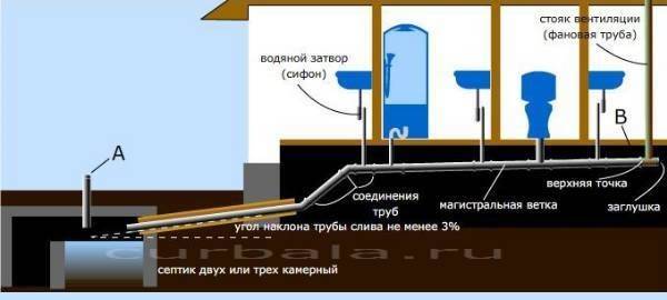 Исключением являются стиральная и посудомоечная машины, слив из которых можно организовать через уже имеющийся канал - ванная, душевая кабинка, труба слива мойки.