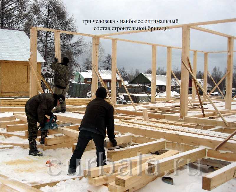 - строительство каркасного дома может осуществляться бригадой из трех человек, третьим из которых может быть будущий хозяин дома;