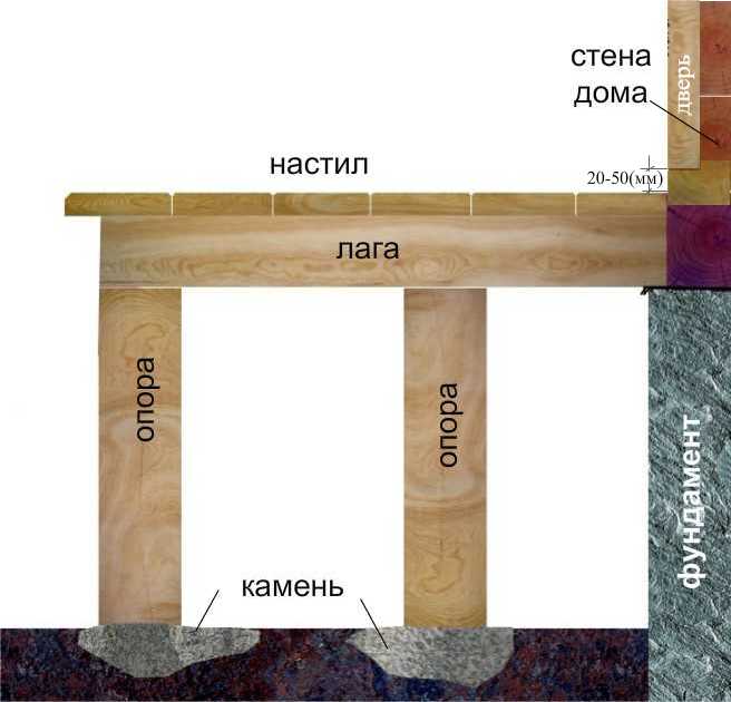 Установка любого крыльца (кроме бетонного) своими руками начинается с планирования и строительства площадки, которая должна быть достаточно прочной, способной выдержать не только нагрузку лестничного марша, но и вес нескольких человек, которые могут на ней одновременно поместиться.