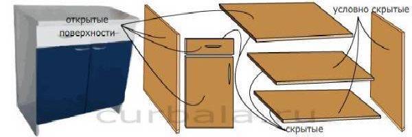 Предварительно собранный кухонный шкаф позволит определить конкретные ошибки, появившиеся в результате неточности измерений или в процессе подготовки деталей. Все работы по подгонке деталей следует производить до начала декоративной отделки кухонного шкафа.