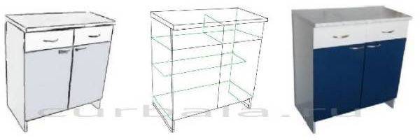 После подготовки и подгонки всех деталей необходимо выполнить черновую сборку кухонного шкафа. Для этого применяются более короткие саморезы или шурупы, чем те, которыми будет выполняться чистовая сборка (рисунок 4, справа).