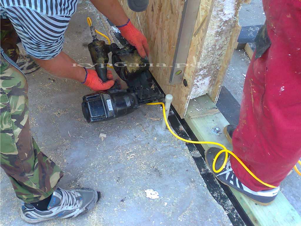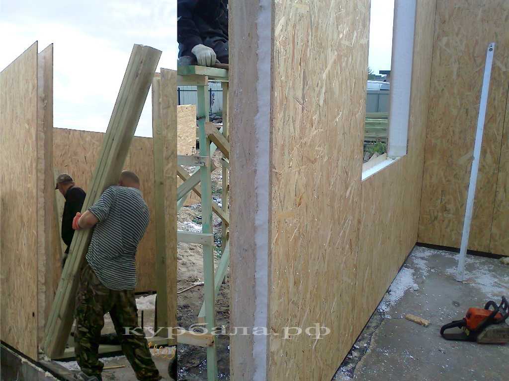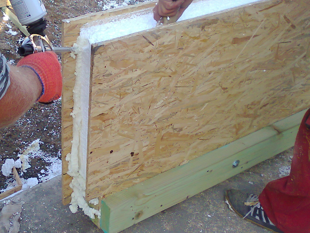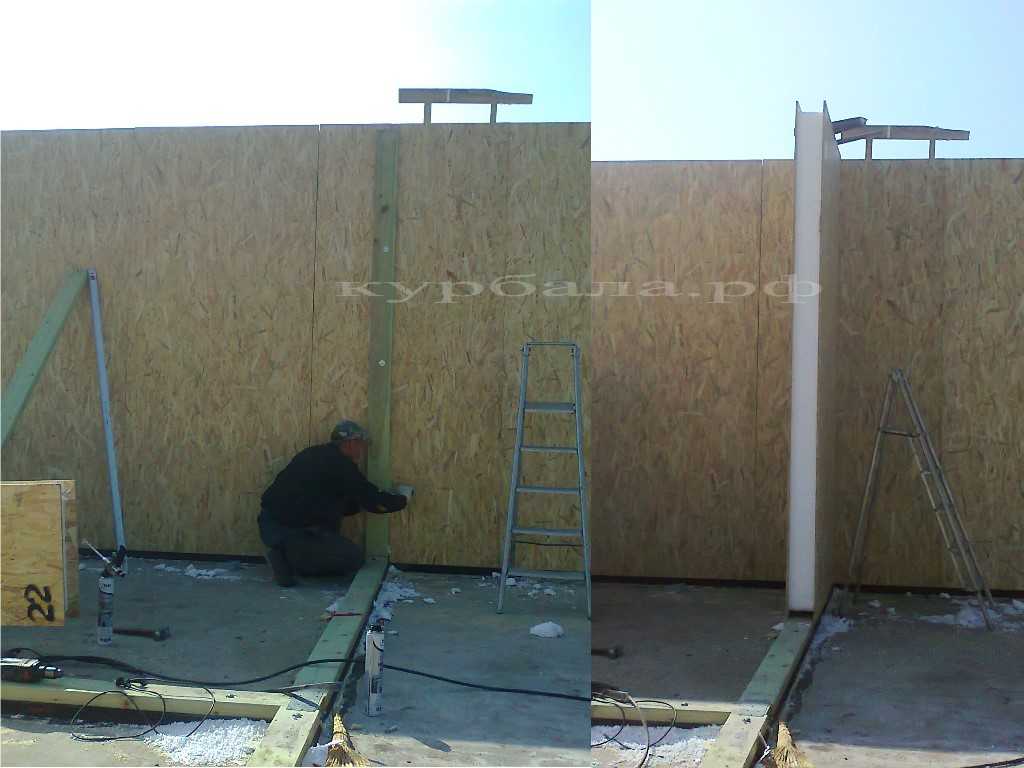 Подготовка двух СИП панелей для установки угла стены имеет несколько последовательных операций, которые будут повторяться при установке каждой последующей СИП панели. Поэтому вместо фото 7 посмотрите видео ролик в начале страницы с краткими пояснениями этапов работы.