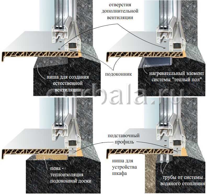 - во-первых, чтобы подоконная доска была теплоизолирована от взаимодействия с холодными материалами или деталями элементов окна, контактирующими с наружным холодным воздухом;