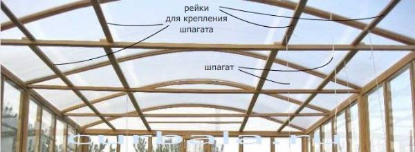 Шпагат на зиму не снимается и используется многократно. При посадке рассады точки крепления шпагатов служат хорошим ориентиром для определения места посадки.