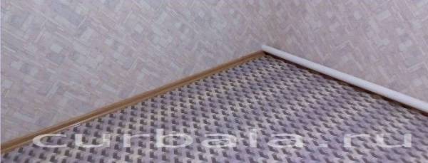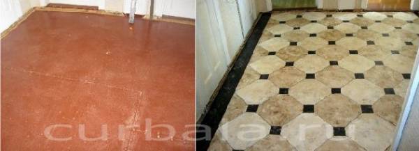 Вот еще примеры того, как можно сделать оформление покрытия пола в разных комнатах обоями с одинаковым рисунком (фото 15 и фото 16).