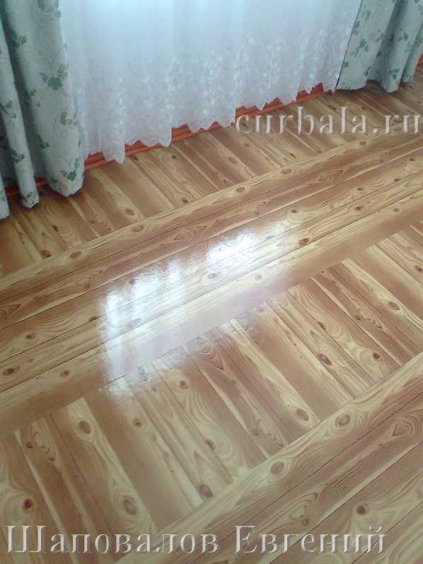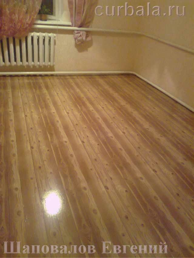 - глянцевые лаки используются для отделки идеально подготовленных поверхностей, например, крышка стола или лицевые панели шкафов. Для покрытия пола нужно использовать матовые или полу матовые лаки, в исключительных случаях - полу глянцевые. Если Евгений слегка прошлифует всю поверхность пола, сбив все "пупырышки" и выпуклости, а затем покроет поверхность тонким слоем матового лака, то пол будет идеальным.