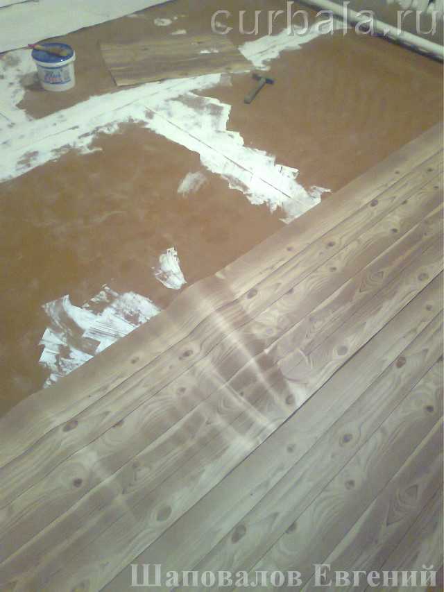 Тогда я решил попробовать сделать пол из бумаги. Но, в отличие от Евгения, я имел не только опыт работы с различными видами обоев, но и с различными видами бумаги и знал, что они очень хорошо впитывают воду. При намокании бумага увеличивается в размерах. Поэтому у Евгения обои набухали в процессе наклеивания, впитывая дополнительную влагу из клея, нанесенного на поверхность пола. В то же время клей при недостаточном количестве влаги быстро схватывался, не позволяя сдвигать и выравнивать обои.