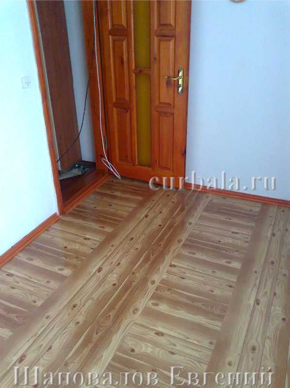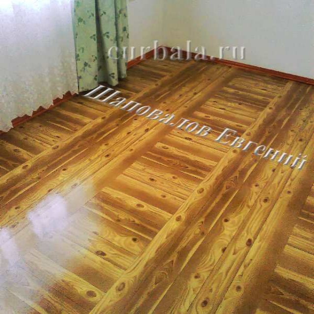 Примечание. Это первый опыт Евгения по созданию покрытия поверхности пола своими руками. Поэтому он пошел по самому простому пути - наклеивал отрезки от рулона обоев. А если те же обои нарезать полосками и создавать из них различные рисунки, то неповторимость вида и прелесть пола увеличится в разы. Правда на это потребуется больше времени, но искусство требует жертв.