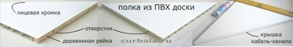 Но, если белый цвет полки или передней кромки не соответствует Вашим планам, то вместо кабель-канала можно использовать ПВХ уголки необходимой текстуры и расцветки.