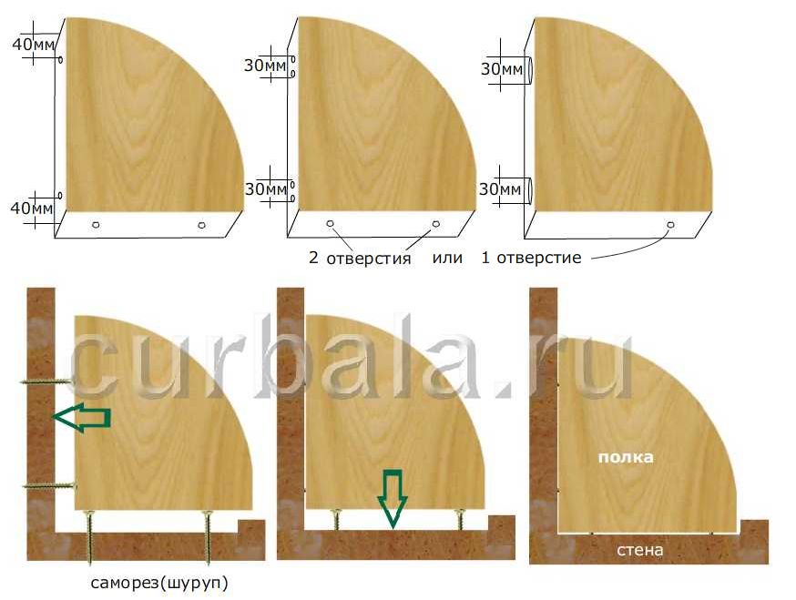 Если Вам необходимо сделать несколько угловых полок, то каждая из них должна быть подогнана по месту. Размеры полок в одном углу могут иметь разные или одинаковые значения (фото 8).