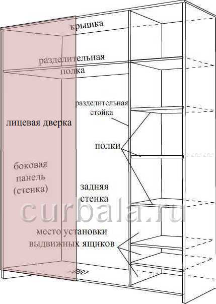 Прежде чем приступать к составлению эскиза шифоньера, нужно определиться с наличием места в помещении и его размерами. В соответствии с этим можно принять решение об изготовлении шифоньера с открывающимися дверками или шкафа-купе.