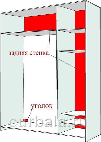 - шифоньер можно сделать с использованием плоскости стены помещения, расположенной за ним. То есть применим почти не используемый прием - задняя стенка будет только у части шифоньера (рисунок 1).