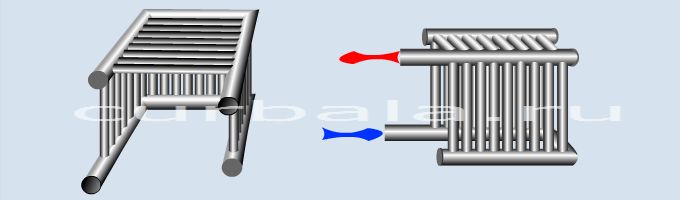 Расчет параметров радиаторов системы отопления нужно делать с учетом нагревательной способности труб подачи и обратки, которые являются полноценными регистрами и тоже достаточно эффективно обогревают помещения. Например, один погонный метр трубы диаметром 50мм (внешний диаметр 57мм) обогревает 0,9 квадратных метра площади помещения.