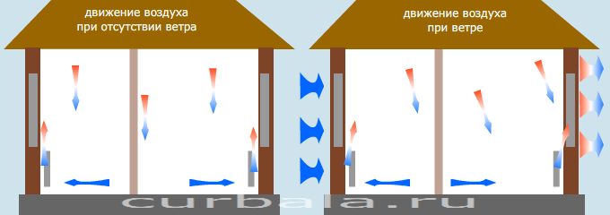 При учете влияния розы ветров на тепловой режим необходимо в комнатах, расположенных с северной и наветренной стороны, монтировать в схеме отопления батареи с дополнительной секцией (секциями), оставляя общее их количество на квартиру неизменным.