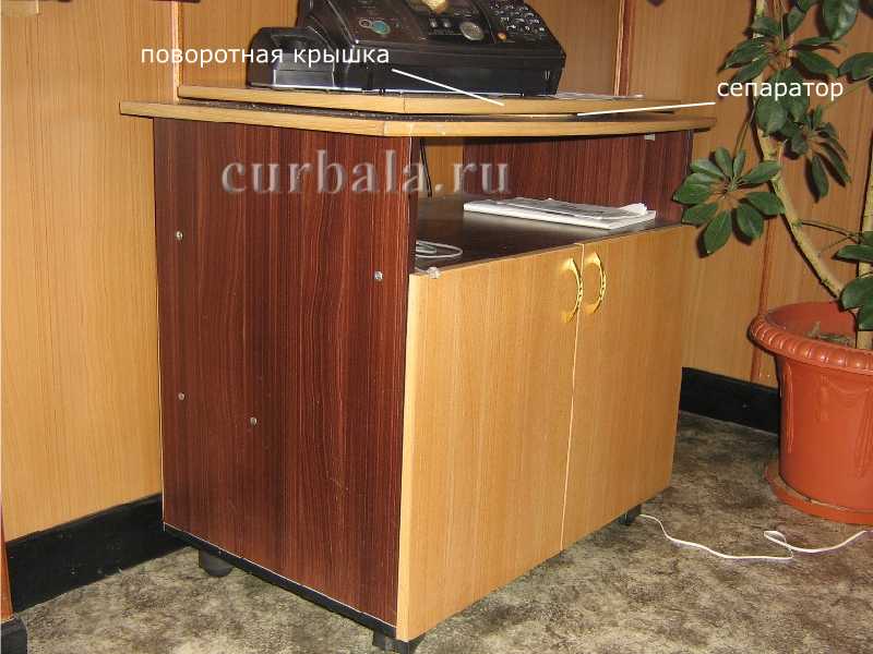Тумбочка под телевизор на фото приведена только в качестве примера. Конструкция Вашего изделия может кардинально отличаться от предложенного варианта с учетом поставленных Вами задач. Например, поворотная крышка может быть значительно больше опорной верхней крышки тумбы, а лицевая сторона полностью открытой или иметь свою, определенную форму.