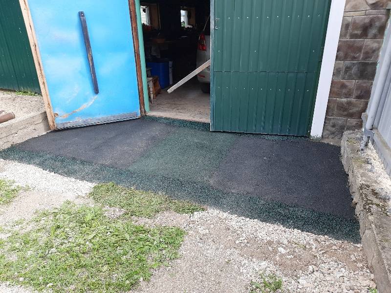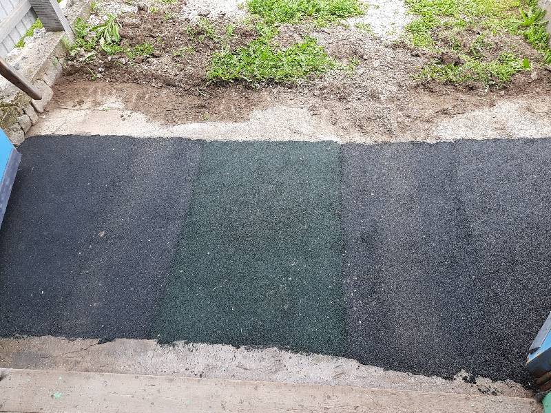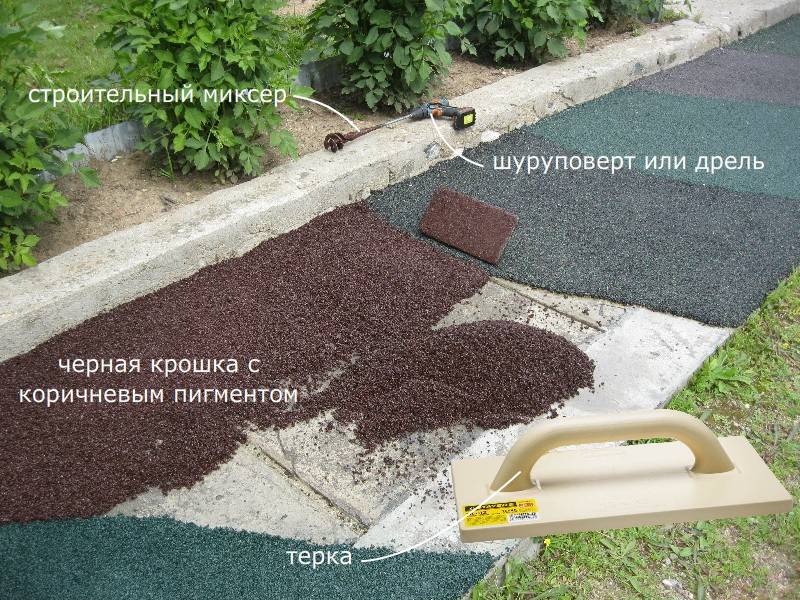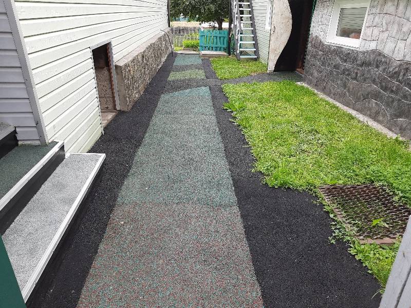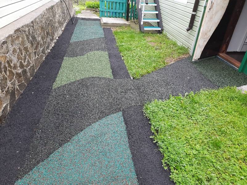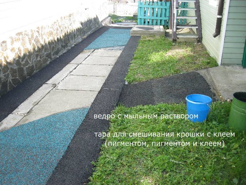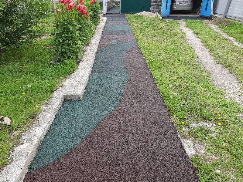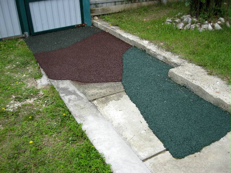 Резиновая крошка производится размерами 1-3 мм, 2-4 мм, 3-5 мм и более крупная. Для дорожек частного участка лучше применять крошку размером 2-4мм. Для крыльца (вход в дом), желательно смешать крошку размерами 1-3 мм и 2-4 мм в равных долях. Другие размеры крошки для частной территории лучше не использовать.