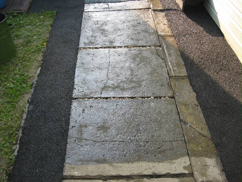 В щели между плитками я наливал отработку моторного масла, чтобы муравьи там не устроили спальный район. Углубления засыпал щебенкой, чтобы была возможность стока воды и эти места не заполнялись крошкой, но и не проваливались со временем.