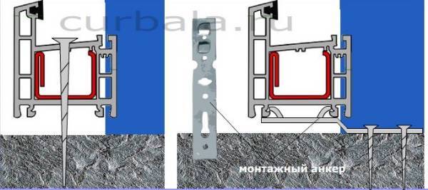 Работа по установке окна требует значительно меньше времени, если крепление рамы окна производится с помощью анкерных пластин (рисунок 5, справа). Такой способ установки окон не требует предварительного удаления стеклопакетов. То есть, окно вставляется в собранном виде.