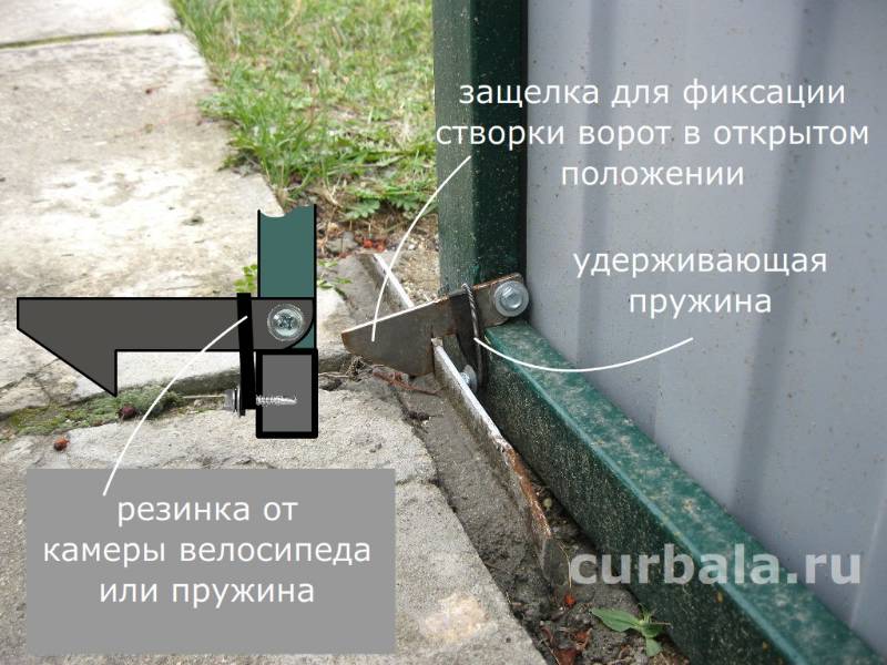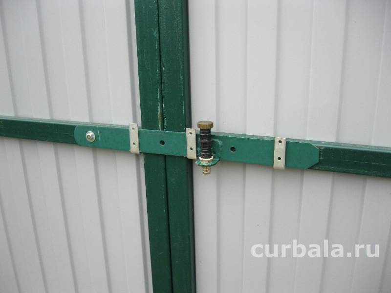 - для открывания калитки необходима установка ручки. Если вместо простой ручки в стойку калитки врезать обычную дверную защелку, то открывание калитки с улицы посторонними людьми резко осложнится, так как возникает необходимость выполнения определенной последовательности действий. Сначала нужно нажать на привод открывания накладной защелки, затем нажать на ручку открывания калитки;